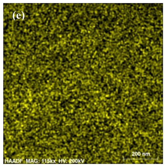 Energy dispersive X-ray spectrometer (EDX) analysis of nano-sized Al2O3 on microstructure of rheoformed 2024 aluminum matrix composite component reinforced by 5 vol % Al2O3 nanoparticles at 615 °C for for 25 min stirring time (a) TEM micrograph; (b) Al; (c) Cu; (d) Mg; (e) O.