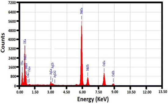 EDX spectra of the (5%)HRG/MnO2–(1%)Ag2O nanocomposite.