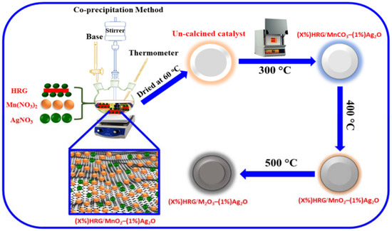2.2. Preparation of (X%)HRG/MnO2–(1%)Ag2O Catalyst