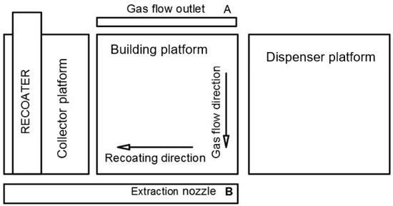 The Manufacturing process typically takes place in nitrogen inert atmosphere, generated from compressed air by nitrogen generator that is built inside the machine. The process chamber consists of three platforms and recoater: The Dispenser platform, where material powder is contained, the Building platform, on which the base plate is set and the building process is done, and the Collector platform for the collection of the excess material. A scheme of the building chamber is shown in Figure 2.