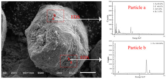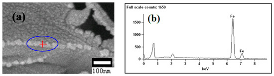 Micromorphology analysis on the surface of reduction particles (a) SEM; (b) EDS.