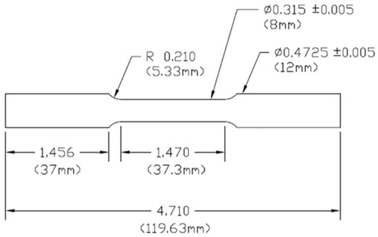 Sub-sized tensile and fatigue samples were machined with the loading axis parallel to the extrusion direction. The dimensions of samples for the tensile and LCF tests are shown in Figure 1. Prior to testing, the gauge sections of the tensile and fatigue specimens were progressively ground along the loading direction with emery papers up to a grit number of 600 to remove residual stresses and any machining marks. Tensile tests were performed in accordance with the ASTM E8 standard in an Instron 8801 servo-hydraulic testing system (Instron, Norwood, MA, USA) at a strain rate of 1 × 10−3 s−1 at room temperature. Strain-controlled (total strain) “pull/push”-type fatigue tests, in accordance with the ASTM: E606 standard, were conducted in air at room temperature with a 25-mm extensometer using a fully computerized Instron 8801 servo-hydraulic testing system operated with the Bluehill LCF3 software (Version 3, Instron, Norwood, MA, USA). The cyclic-deformation test conditions consisted of a zero-mean strain (i.e., a strain ratio of Rε = −1, completely reversed strain cycle) and a constant strain rate of 1 × 10−2 s−1 with a triangular loading waveform. As preferred in the ASTM: E606 standard for continuous cyclic tests, and generally for strain-rate-sensitive materials, a triangular waveform results in a constant strain rate during the course of one cycle. The cyclic frequency was varied depending on the strain amplitude to maintain a fixed strain rate. The cyclic frequency was calculated using the triangular waveform, and it was varied depending on the strain amplitude to maintain a fixed strain rate. LCF tests were performed at different strain amplitudes ranging from 0.2% to 1.2%. At least two samples were tested at each level of the strain amplitude to confirm the results. At low strain amplitudes (e.g., 0.2%), strain-controlled tests were sustained for 10,000 cycles before being converted to load control, with a sine cyclic waveform at a frequency of 50 Hz. The fatigue life was considered as the number of cycles required to completely separate the samples.