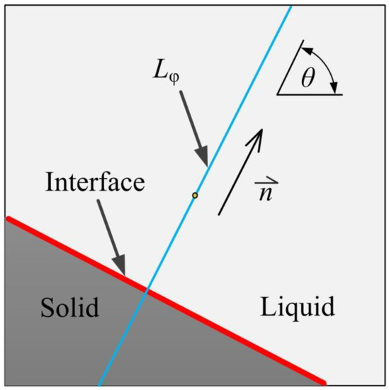 where θ is the angle (rad) between the growth orientation and x axis, Δl is the grid dimension (m), Lϕ is the length of the line segment (m) along the normal direction going through the cell center in Figure 1.