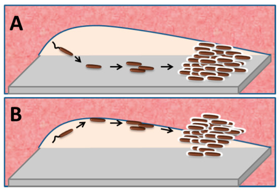 Alternatively, similar to burn wound infections or keratitis, initial bacterial invasion could occur via the wound liquid to susceptible wounded tissue surfaces (Figure 2) [116,117]. If true for implanted materials other than magnesium, this scenario would predict dire consequences for implant infection prevention strategies.