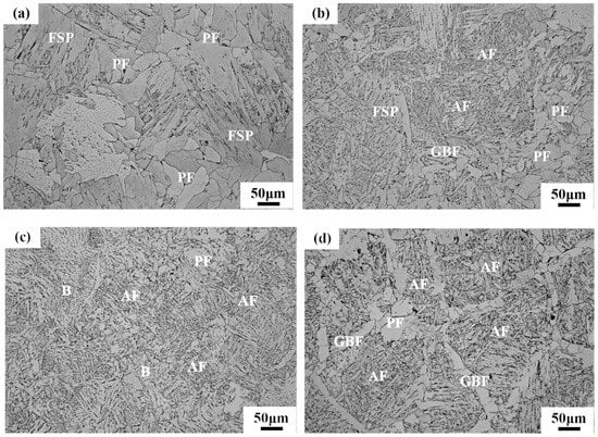 - For EH420-Mg steel, after a continuous cooling transformation by a dilatometer, the microstructure of the LF furnace station sample was composed of FSP and PF, which then changed to AF, PF, and B (vacuum treatment in an RH furnace), while in the welded sample, the microstructure was composed of AF, GBF, and PF. A Ti-Mg-containing oxide promoted the nucleation of AF.
