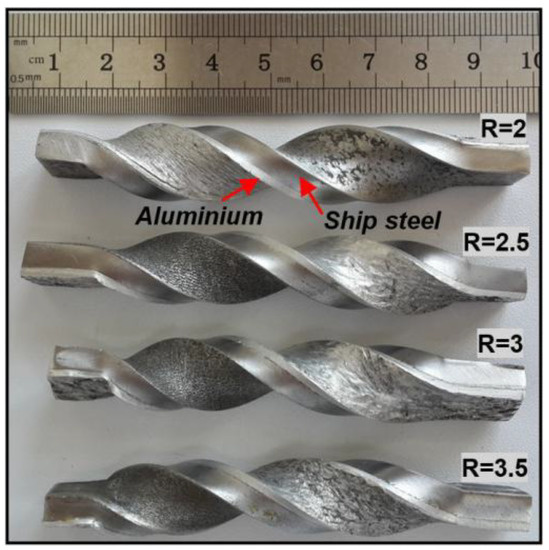 - After the 360° twisting test was applied to the bimetal composite samples, no faults were seen in the bonding interface of any of the composites.