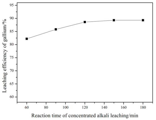 Figure 6 shows the variation of gallium leaching efficiency with increased reaction time for concentrated alkali leaching.
