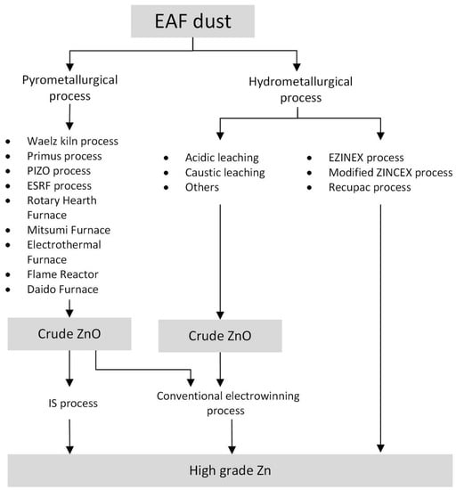 - Stevart, C. Sustainability in Action: Recovery of Zinc from EAF Dust in the Steel Industry, 2015 Intergalva Conference, Liverpool, England, June 2015. Available online: http://www.icz.org.br/upfiles/arquivos/apresentacoes/intergalva-2015/5-2-Stewart.pdf (accessed on 24 April 2018).