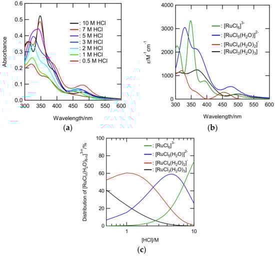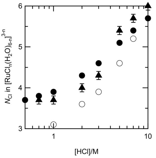 - Cady, H.H.; Connick, R.E. The determination of the formulas of aqueous ruthenium(III) species by means of ion-exchange resin: Ru+3, RuCl+2 and RuCl2+. J. Am. Chem. Soc. 1958, 80, 2646–2652. [Google Scholar] [CrossRef]