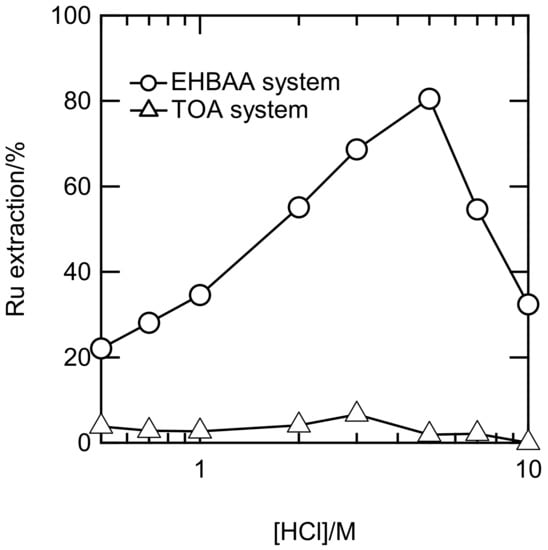 Suzuki, T.; Ogata, T.; Tanaka, M.; Kobayashi, T.; Shiwaku, H.; Yaita, T.; Narita, H. Speciation of Ruthenium(III) Chloro Complexes in Hydrochloric Acid Solutions and Their Extraction Characteristics with an Amide-Containing Amine Compound. Metals 2018, 8, 558. https://doi.org/10.3390/met8070558