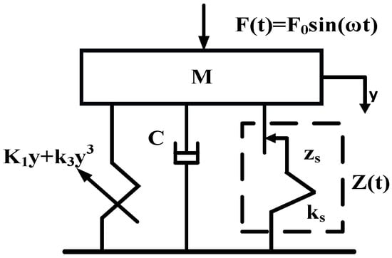 - When the exciting force was 1 N, the resonant frequency in the forward frequency sweeping test (Figure 5 (Line a)) was 19.67 Hz, and in the backward frequency sweeping test (Figure 5 (Line b)) it was 19.44Hz. It can be seen that the resonant frequency in forward frequency sweeping was higher than that in backward frequency sweeping, indicating that the frequency response curve of the coated damping structure for metal rubber of bellows bent and jumped. The bending and jumping of the frequency response curve indicate that the coated damping structure for metal rubber of bellows contained a high-order nonlinear elastic restoring force.
