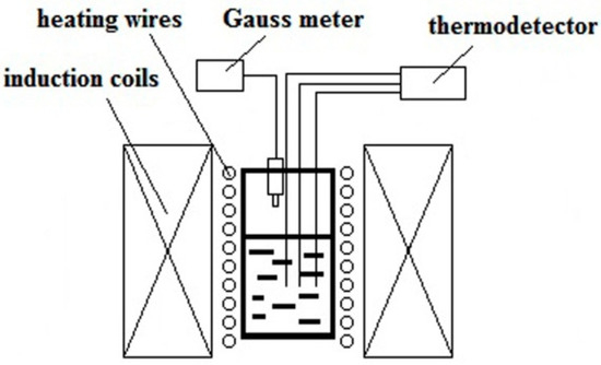 - Vivès, C. Solidification of tin in the presence of electric and magnetic fields. J. Cryst. Growth 1986, 76, 170–184. [Google Scholar] [CrossRef]