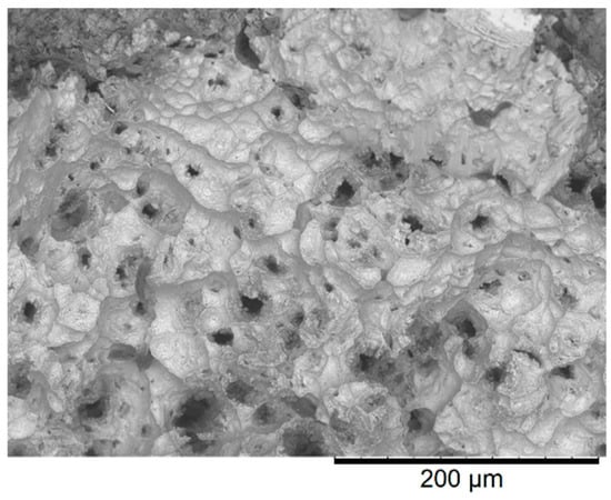 SEM fractographs that were obtained from the Ti-6Al-4V alloy creep tested at 600 °C and 125 MPa are displayed in Figure 13. The appearance of the fracture surface was ductile with the presence of the dimples, which is a typical alveolar structure based on microvoid coalescence. This result aligns with those that were reported for the same material with different surface treatments by other authors [35,56,57,58].