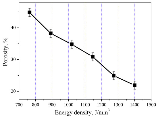 Porosity variation curve of the LAMed ZK61 deposited at different E.