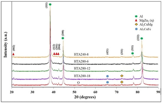 3.1. The Microstructure of 7075 Aluminum Alloy Extruded Rod after Various Post-Process Heat Treatments (PPHTs)
