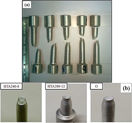 3.3. The Tensile Fracture and the Working Hardness of PPHT Specimens