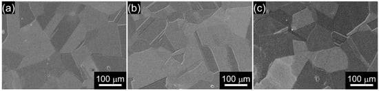 The investigated alloys were Fe-based 18Cr10Mn0.4N0.5C(0–2.17)Mo (in wt %) HIAs, which have been patented recently [16,17]. The detailed chemical compositions of the three alloys are given in Table 1, and were measured using an optical emission spectroscopy (QSN 750-II, PANalytical, Almemo, The Netherlands) and an inductively coupled plasma atomic emission spectroscopy (Optima 8300DV, PerkinElmer, Waltham, MA, USA).