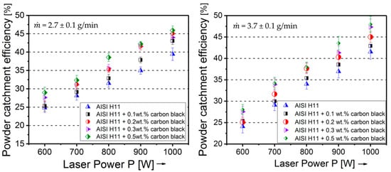 | AISI H11 + 0.2 wt. % carbon black (n = 3) | 2181 ± 32 | 4327 ± 49 |