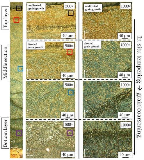 3.4.1. Influence of Post-Heat-Treatment on Microstructure and Hardness Distribution