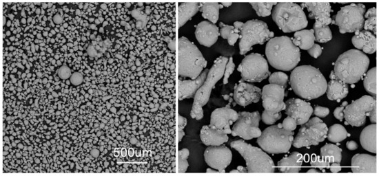 The A357.0 powder used in this paper was observed by scanning electron microscope, SEM (ESEM, Quanta-200, FEI, Thermo Fisher Scientific, Eindhoven, The Netherland), equipped with an X-ray energy dispersion spectroscopy system (X-EDS, INCA Oxford Instruments, Abingdon, UK) in order to check the particle shape and the chemical composition.