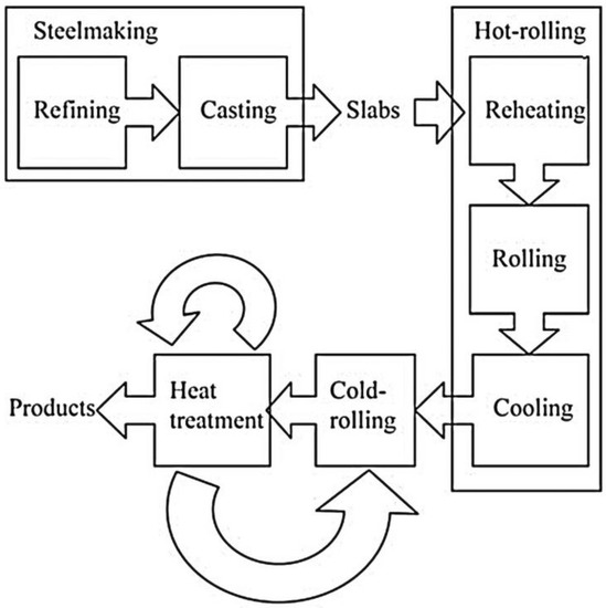 Schematic of conventional slab to finish coil production process (reproduced from [4], with permission from the authors, 2013).
