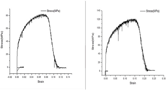 Sample 1A Stress Strain Curve at 800 °C. (Left) 0.0001 strain rate, (right) 0.001 strain rate [12].