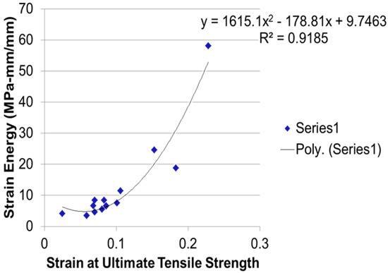Strain energy vesrsus strain at ultimate tensile strength [15].
