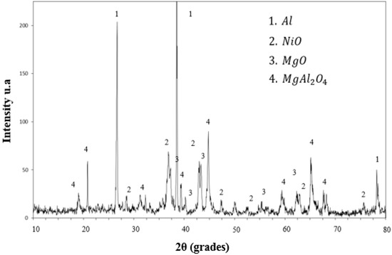 - With respect to the reaction mechanism, it was found that the step that controlled the overall chemical reaction was the diffusion of the Al and Mg atoms to the boundary layer, where they reacted with NiO particles, releasing Ni and forming Al2O3 and MgO as the reaction products. In turn, these compounds formed MgAl2O4 during cooling. The formation and breaking of MgAl2O4 into many crystals ensured the porosity required for the diffusion of the chemical species involved.