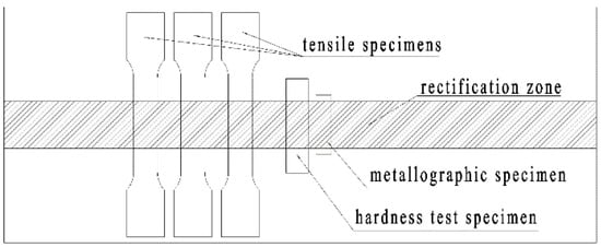 Figure 11 shows the position where the pictures of the metallographic microstructure were taken. The comparison results of the metallographic microstructure are shown in Figure 12 and Figure 13, showing transverse sections of SWC and the flame straightening, respectively.