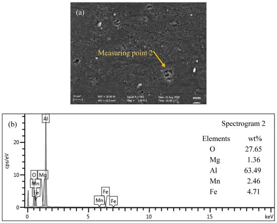 Scanning electron microscopy (SEM) analysis of precipitates with synchronous water-cooling: (a) measurement position; (b) spectrogram.