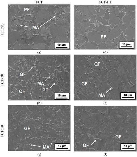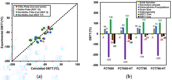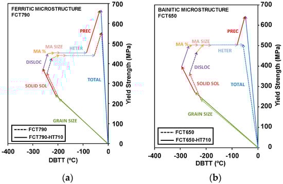 - Larzabal, G.; Isasti, N.; Rodriguez-Ibabe, J.M.; Uranga, P. Evaluating Strengthening and Impact Toughness Mechanisms for Ferritic and Bainitic Microstructures in Nb, Nb-Mo and Ti-Mo Microalloyed Steels. Metals 2017, 7, 65. [Google Scholar] [CrossRef]