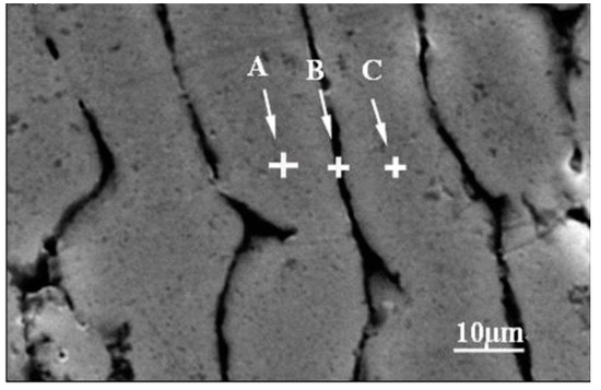In addition, it can be seen that the liquid fraction in the microstructure decreases with a location change from A to D. The liquid fraction in location A is obviously higher than those in locations B, C, and D. A similar phenomenon was found in the microstructure of the rheoformed cylinder parts of nano-sized SiCp/7075 composite [42]. The difference between them is that the extent of change of the liquid fraction in the thixoformed part is less than that in the rheoformed part. This is attributed to the lower remelting temperature in the thixoforming process compared to the rheoforming process shown in the previous research [42]. The amount of liquid phase influences the deformation mechanism in a difference location. In location A, liquid phase is aggregated obviously due to lower flowing resistance as compared with solid grains, resulting in the occurrence of FLS or SSS deformation mechanisms. Compared with location A, the amount of liquid phase in locations B, C, and D decreases obviously due to its segregation in location A. Consequently, the deformation mechanism of PDS is dominant during the flow of semisolid slurry.