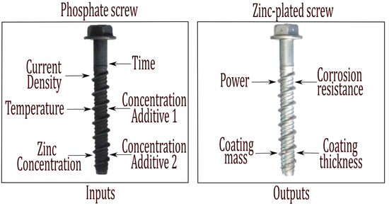 Use of the statistical open source software R (r-project) [48] and the input parameters and levels that appear in Table 1 led to the manufacture of 54 zinc-electroplated steel screws with the corresponding inputs and outputs obtained experimentally (Table 2).
