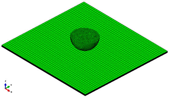 Figure 3 illustrates that the meshed view of the finite element model of high manganese steel plate is modeled by using eight node brick (C3D8R: Eight-node brick element with reduced integration) as linear elements and a semi-spherical impactor with a diameter of 20 mm is defined as four node (R3D4: 3D bilinear discrete rigid quadrilateral) elements [29].