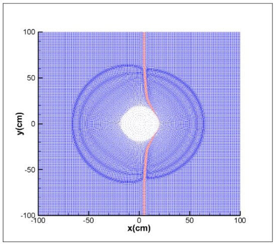 The traditional grid methods have been successfully employed for several decades in engineering practice but has limitations when the considered non-linear dynamics problem of metals involves large deformation, such as hyper-velocity impact and explosion, due to distortions in the mesh when implementing a Lagrangian approach. The deformation of the grids can lead to numerical inaccuracies or even render the calculation impossible [,]. To overcome these difficulties, a great number of meshless methods—such as the smoothed particle hydrodynamics method [,], the diffuse element method [], the element-free Galerkin method [,], partition of unity [], the reproducing kernel particle method [,], the cracking particles [], the dual-horizon peridynamics [,] and the material point method (MPM) [,,]—have been proposed and developed in recent years to solve non-linear dynamics problems of metals [,].