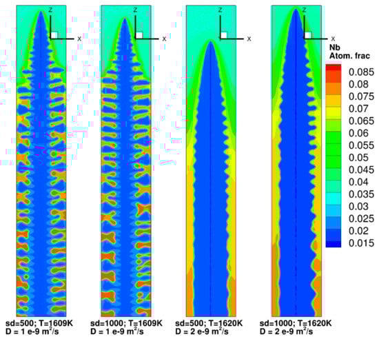 - Tourret, D.; Karma, A. Growth competition of columnar dendrite grains: A phase-field study. Acta Mater. 2015, 82, 64–83. [Google Scholar] [CrossRef]