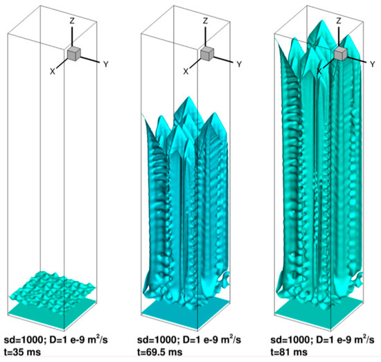- Mullis, A.M. Spontaneous deterministic side-branching behavior in phase field simulations of equiaxed dendritic growth. J. Appl. Phys. 2015, 117, 114305. [Google Scholar] [CrossRef]