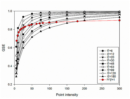 2.4. Effect of Point Intensity and Number of Quadrats (q) on the GSE Metric