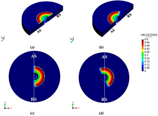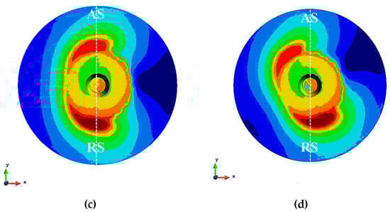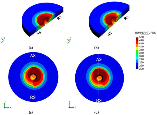 The detailed numerical investigation and its experimental validation of the dependence of angle β on the process parameters are out of the scope of this work. We will focus on the influence of angle β on the thermo-mechanical behavior of FSW, by comparing two cases: without tilt (α = 0°, β = 0°) and with tilt (α = 2.5°, β = 25°).