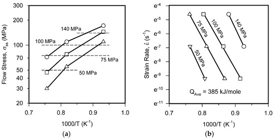 - Sherby, O.D.; Burke, P.M. Mechanical behavior of crystalline solids at elevated temperature. Prog. Mater. Sci. 1967, 13, 325–390. [Google Scholar] [CrossRef]