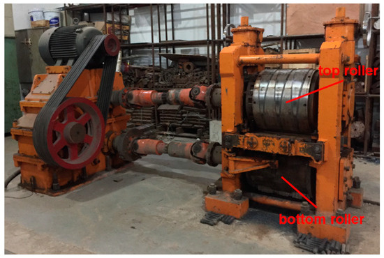 The rolling experiments were carried out using a H500 mill (USTB, Beijing, China) at the University of Science and Technology Beijing, China, as shown in Figure 2. The main technical parameters of the H500 mill are listed in Table 1. The raw material 21-4N was supplied by Bao Steel, Shanghai, China. The chemical composition of the 21-4N is listed in Table 2, and the tensile strength of 21-4N is listed in Table 3.