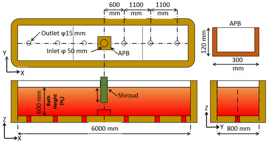 Geometric details of full-scale tundish and advance-pouring box (APB).