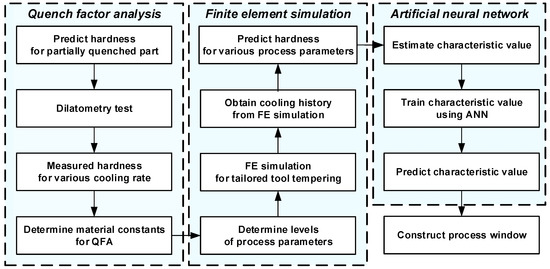 - FE simulation and QFA as well as ANN have been applied for describing the process window. The process window can be determined from consideration of main process parameters, such as heated tool temperature and quenching time, which are relevant to the tailored tool thermomechanical treatment.