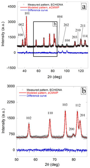 - Ribarik, G.; Ungar, T.; Gubicza, J. MWP-fit: a program for multiple whole-profile fitting of diffraction peak profiles by ab initio theoretical functions. J. Appl. Crystallogr. 2001, 34, 669–676. [Google Scholar] [CrossRef]