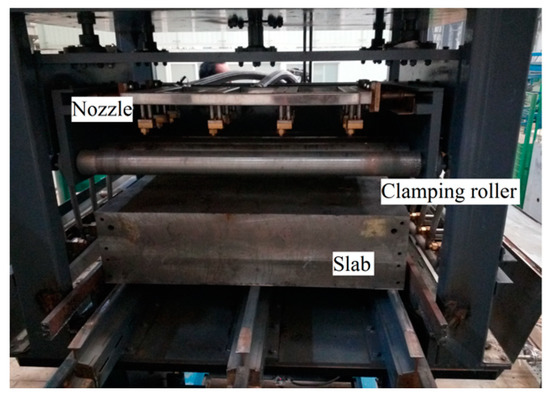 In this way, the slab contact conditions (e.g., surface structure and clamping roller) could be manipulated to be similar to those used in industrial practice. There were four clamping rollers with a 120-mm diameter and a 160-mm separation distance that could clamp a slab with a 100- to 350-mm thickness.