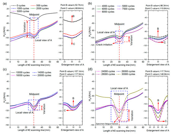 4.2. Relationship between Magnetic Memory Signals and Fatigue Loading Cycles