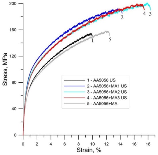 | AA5056 US + MA2 | 71 ± 6 | 201 ± 12 | 18.8 ± 0.6 |