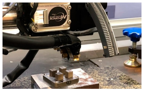 Residual stress measurement was conducted using the X-ray diffraction (XRD) technique. The XRD method is non-destructive, and is widely used to measure surface stresses in SLM-manufactured components. Although in-depth residual stress evaluation is preferred, the cost of performing such measurements is usually prohibitive, particularly when evaluating for multiple parts such as in this research. Nevertheless, since the highest stress magnitudes are usually concentrated near the surfaces of SLM built parts, analyzing only the surface is considered adequate. The principle of the XRD method, which rides on Bragg’s law of constructive interference as well as the generalized Hooke’s law, is described in [2,36]. In this study, a ProtoXRD X-ray diffractometer (Figure 3) equipped with two detectors was used to determine the Fe-α {211} lattice deformations at 25 kV and 4 mA. The X-ray anode tube used was Cr K-α with a wavelength of 2.291 Å. The rest of the diffraction parameters are shown in Table 1. The sin2ψ method was used to calculate the stress. Details of this method can be found in [36]. Each sample was evaluated for residual stress at the center of the top surface.