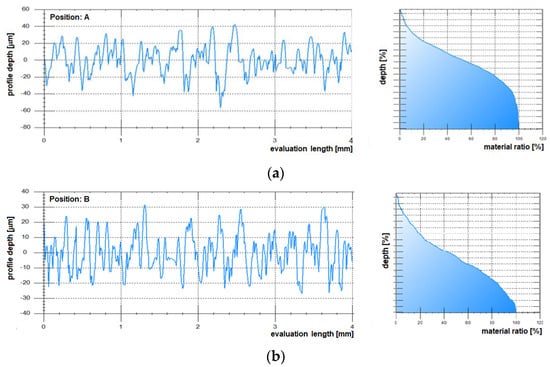 The samples were also subjected to roughness measurements. The measurement was carried out by the Surftest SJ-201 contact profilometer (Mitutoyo, Tokyo, Japan). The instrument parameters applied in the measurement were as follows: mean line system, cut-off length 0.8 mm, number of sampling lengths: 5, evaluation length: 4 mm, number of measurements: 50.