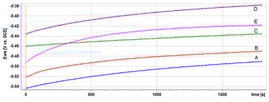 Course of the open circuit potential (OCP) during stabilization.